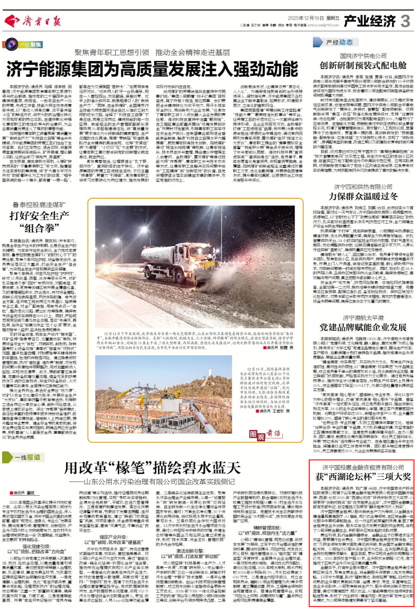 • 濟寧國投惠金融資租賃有限公司獲“西湖論壇杯”三項大獎